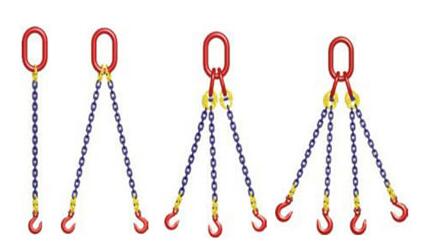 安全保證:4倍安全系數。單肢(t)雙肢(t)三肢(t)四肢(t)選用吊鉤鏈條米重 (kg/m)0°0-45°>45-60°0-